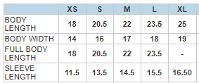 Adult Sizing Chart